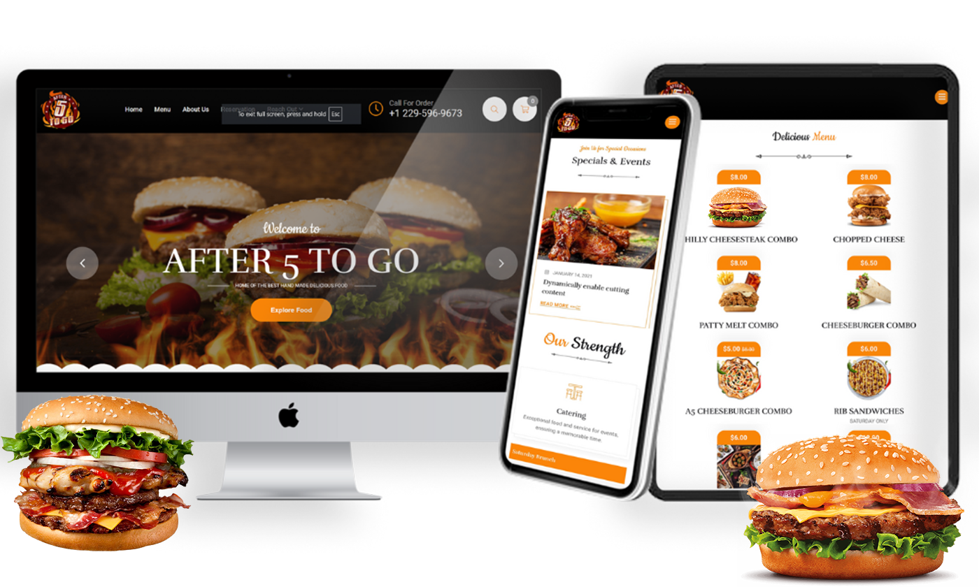 Experience mouthwatering gourmet burgers, finger-licking wings, and Southern Grilled BBQ at After 5 To Go! Part of the After 5 Social Lounge, LLC, we bring your favorite flavors directly to you with our mobile food service and physical location in Americus, GA. Whether you’re craving sizzling burgers or savory wings, we’ve got something for every taste. Join us for a delightful food experience—on wheels or dine-in!