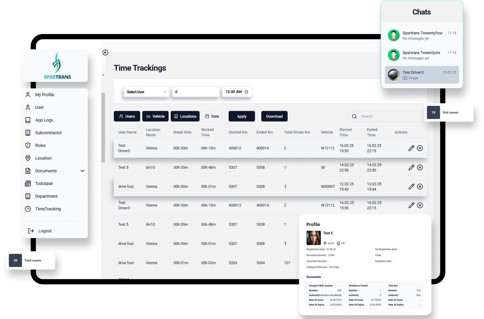 ✓ User Management: Manage company employees, subcontractors, and drivers with detailed profiles and access control.
