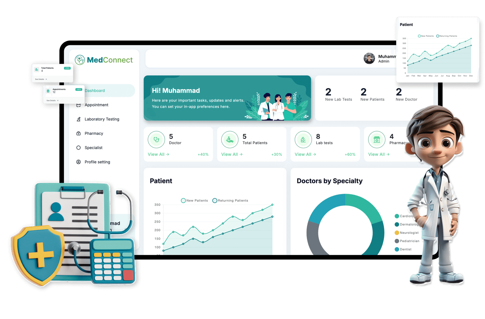 ✓ B2B & B2C Modules : Dedicated portals for doctors/admins and patients.